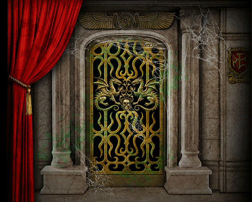 Beyond a curtain of blood red velvet there stands an ornate locked gate. Strange howls and cries can be heard from somewhere beyond. Your key turns in the lock and the gate opens with the squeal of rusted hinges, revealing a stone staircase that spirals down into shadows. You descend into the forbidden depths below the manor to discover what waits in the darkness. A distant bell tolls the witching hour as you accept your dark heritage.