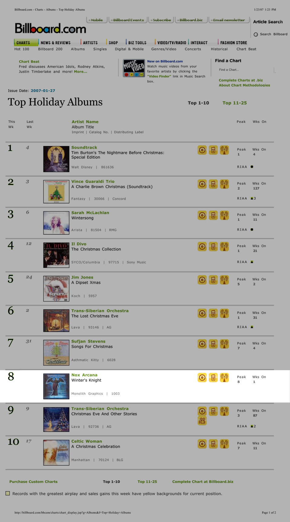 As for me, great music attracts me, and I have considerable admiration for talented musicians who are willing to walk a different path. Winter's Knight will take you down that bizarrely distinct trail for the holidays, but Nox Arcana will make the journey well worth your while.