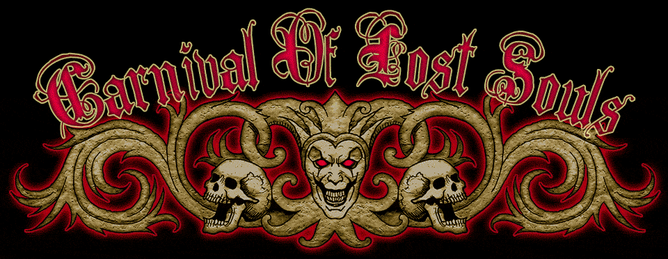 The sound of drums breaks the calm and warns you that a parade is approaching. You conceal yourself in the shadows as the music draws near. Nightmarish shapes emerge from the mist. A troupe of life-sized marionettes, painted in the likeness of maniacal harlequins, lurch and stagger along as they play a sinister refrain on trumpets and drums. Four black horses pull a wagon that holds a covered cage, and frightening sounds emanate from the captive monstrosities within. The Ringmaster follows the wagon and cracks his bullwhip to quiet the savage beasts. A pair of hulking clowns clumsily juggle a human skull and two large bones between them as a devilish looking man donning a tophat and scarlet cape waves several flaming daggers high for all to see. Finally, a snake charmer wearing a jeweled turban plays his hypnotic melody on his pipe, followed by two black vipers and a larger white serpent. The parade enters the large circus tent at the farthest end of the carnival.