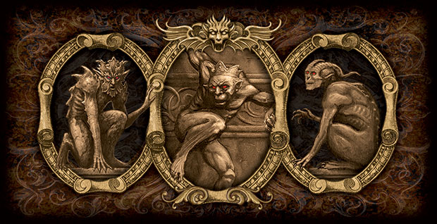 Strange sounds draw you to a dark tent adorned with Arabian symbols intertwined with snakes. Exotic piping music accompanied by rhythmic drumming casts a hypnotic spell and beckons you to venture within. A man wearing a jeweled robe and turban sits on a silken rug in the middle of the room and plays a dark melody on an intricately carved pipe. Three large woven baskets sit on the ground before him.
